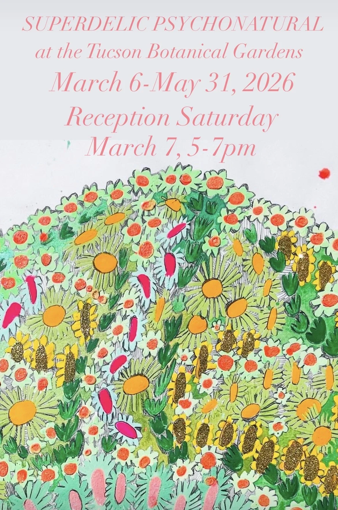 And lastly, I have a grouping of cute paintings on handmade paper in the annual 10x10 Fundraiser at Tohono Chul Gardens and Gallery. Each piece in the sale is $100 and everything is under 10x10 inches. Great time to pike-up a painting or 4 and support this amazing Tucson institution. 10x10 is on display February 28- May 24, 2026.